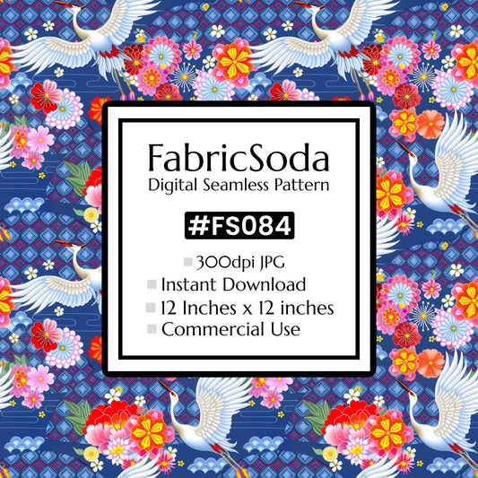FS084 Japanese Style Crane Floral Seamless Pattern JPG