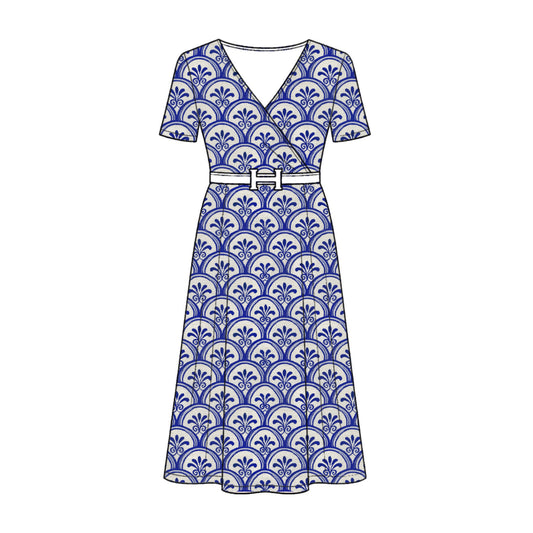 FS079 Blue Floral Japanese Wave Cotton Printed Fabric